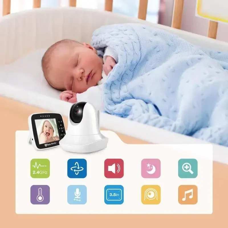 3.5 inch high contrast color LCD monitor:This video baby monitor is equipped with a 3.5 inch LCD screen and connected to the baby camera via enhanced 2.4GHz wireless technology, clear our babies without WiFi interference