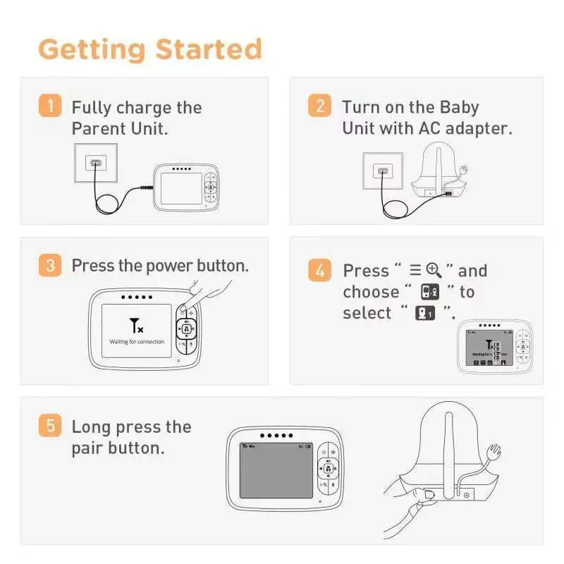 Step 1: Connect the power socket to get start the baby unit, a blue light led will display when working