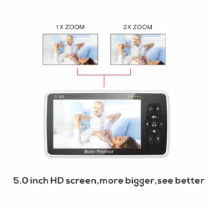 5 inch Video Baby Monitor with Two Camera and Audio, Night Vision, 4X Zoom, 1000ft Range 2-Way Audio Temperature Sensor Lullaby